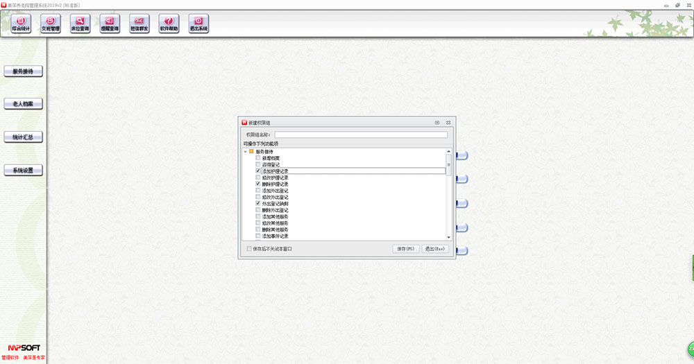 美萍养老院管理系统是一款根据养老机构业务特点设计的专用管理软件,界面设计简洁、美观、易用。软件涵盖咨询接待、档案管理、员工、房间床位、护理、外出登记、事件记录提醒、费用管理、护理管理、短信及微信消息提醒、统计汇总、系统设置等模块。涉及从咨询、接待、入住到退住的所有流程。系统设计以具体的业务对象为目标,以老人为中心,以业务为主线,充分重视客户的管理特色和风格。通过明确岗位职能,科学规范管理,有效提高人员工作效率,提升服务质量和竞争力。