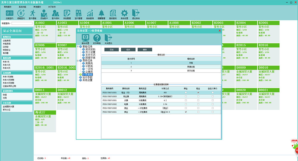 4、完善的客户管理、预定管理和签约管理,出租签约的向导式操作,费用清单的高度灵活性以及强大的费用计算公式定制,从软件的规范操作上规避软件复杂性,极大的提高工作效率。