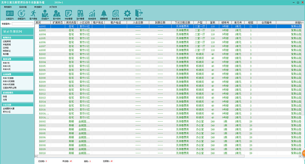 美萍公寓出租管理系统软件出租房商铺房屋厂房宿舍租售水电费收费