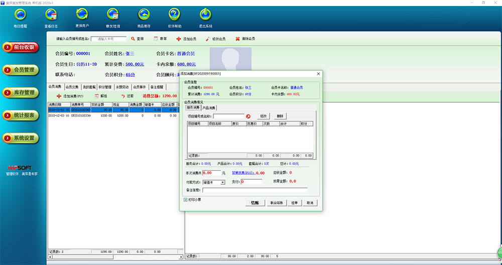 美萍美发店医疗美容院美甲店店务管理系统收银软件理发店办卡单机