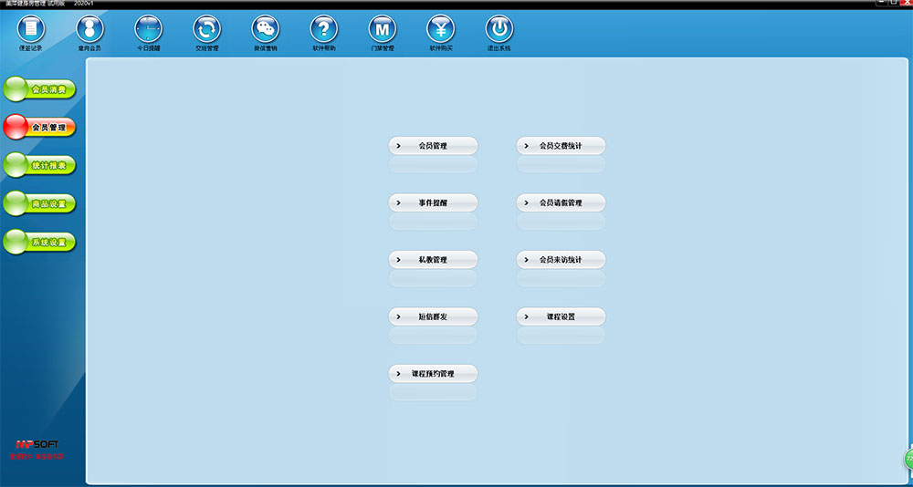 美萍健身房管理系统是一款专业的健身俱乐部管理软件,系统界面简洁优美,操作直观简单,无需专门培训 即可上手操作,美萍健身会所管理软件根据健身俱乐部日常工作流程而特别设计,可以满足健身会所经营过程的 会员管理,收费管理,健身教练管理,门禁管理的多种管理要求,是健身房,健身俱乐部,健身会所进行信息化管理,提高工作效率和顾客满意度不可获缺的强大工具。