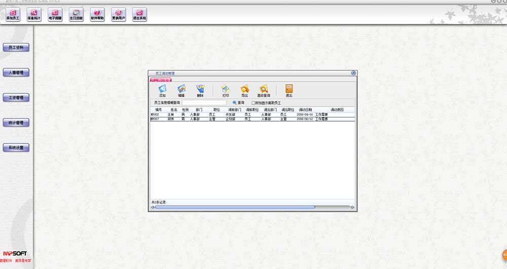 3、企业人事管理-支持员工工资、培训、奖惩、考评、调动、请假管理。