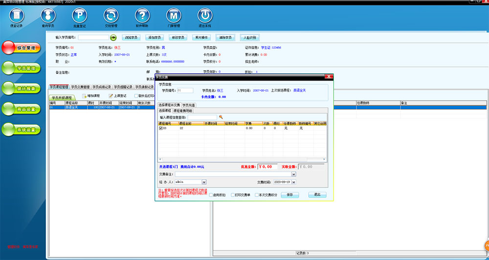 2、学员交费的管理。