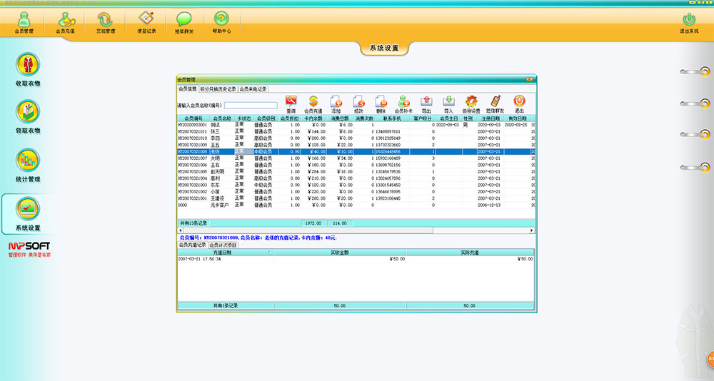 美萍干洗店管理系统是一款专业的洗衣店管理软件,它集前台收费收银系统,会员卡管理系统,财务报表系统等强大功能为一身,系统界面简洁优美,操作直观简单。美萍洗衣店管理系统为广大干洗店,洗衣店提供了成本分析,利润分析,洗衣流程管理等诸多功能,用全新的经营理念,将干洗店经营者和消费者、经营管理和服务有效地融合在一起,建立起规范的经营模式,提高您在行业中的管理档次和服务水平,使您在激烈的竞争中轻松胜出。