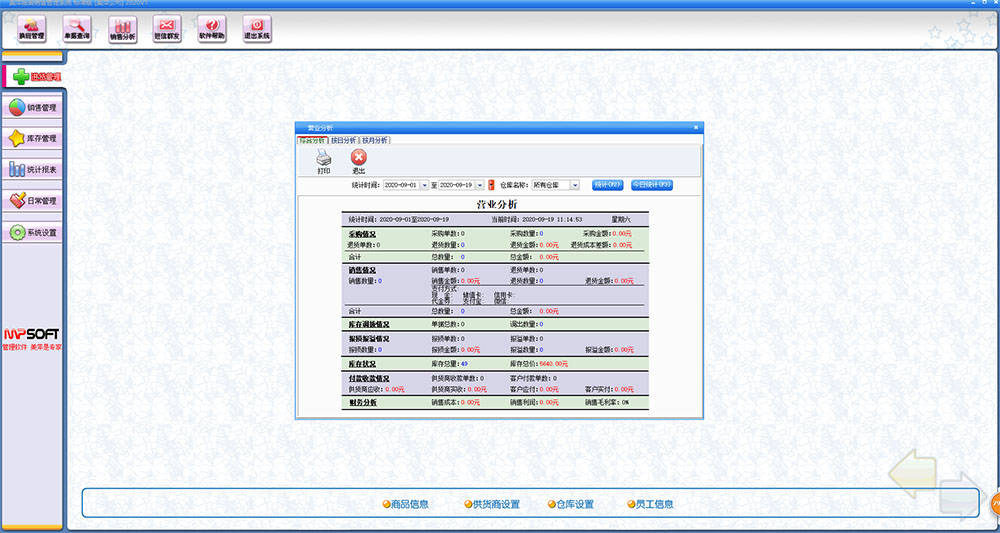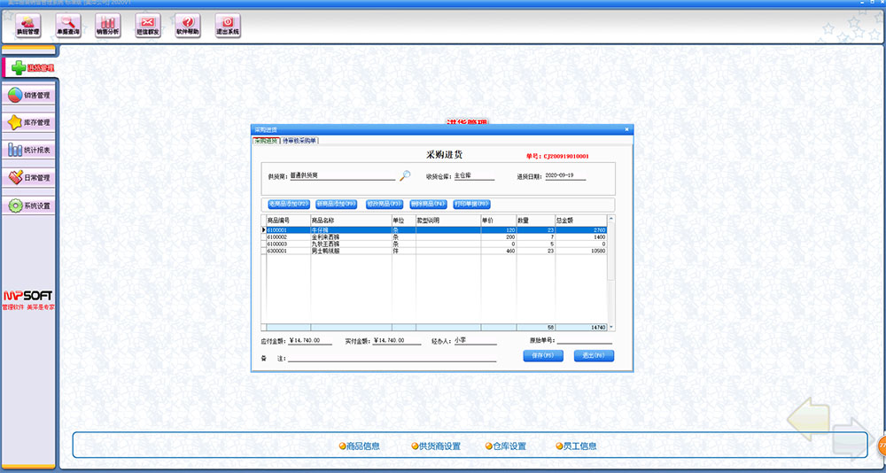 6、基本设置:商品信息,供货商,客户,员工,仓库等基本参数的设置。