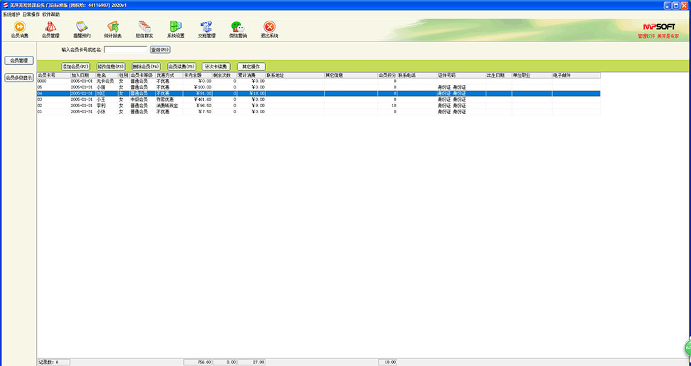2、支持储值卡、折扣卡、计次卡,会员提醒(包括生日提醒),会员来电提示,短信群发。